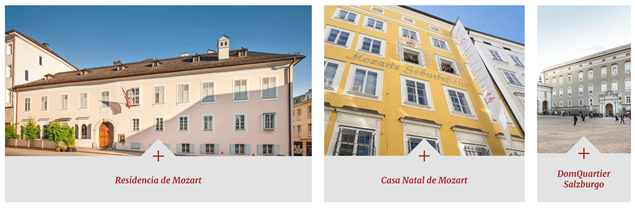 Wolfgang Amadeus Mozart nació en Salzburgo y pasó aquí su infancia. Por eso Salzburgo también se conoce como la ciudad de Mozart. En cada esquina se encuentran huellas de su paso. Uno de los museos más populares de Austria es la casa natal de Mozart en la calle Getreidegasse. Numerosos objetos originales, retratos y una vivienda burguesa reconstruida invitan a viajar en el tiempo al siglo XVIII. Por otro lado, el pianoforte de Mozart y la casita de La flauta mágica se pueden visitar en la casa de Mozart en la Makartplatz, donde también hay un espectáculo multivisión y una nueva exposición sobre la historia de la Fundación Mozarteum. El Dom Quartier Salzburg es el auténtico lugar de representación de la música de Mozart.