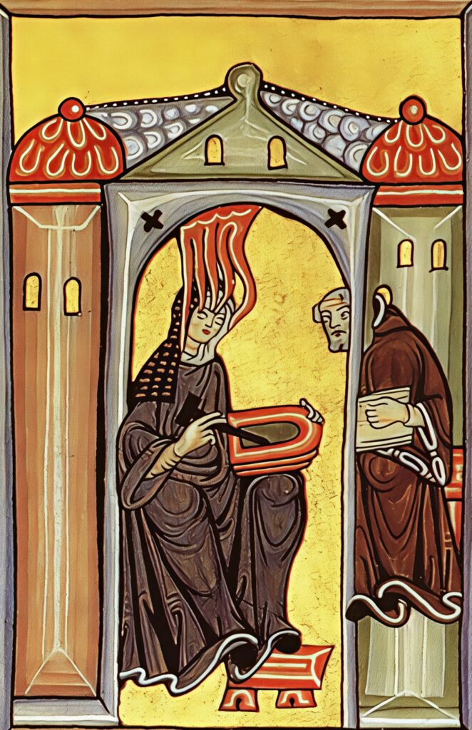 Con la ayuda de tres secretarias, comenzó a escribir no solo lo que veía, sino también lo que oía. Su primer libro, Scivias, obtuvo el respaldo canónico, lo que le permitió establecer vínculos con figuras políticas y eclesiásticas de su tiempo.
